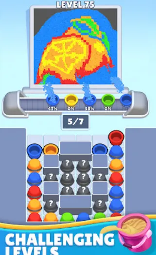 1、玩法极其的简单几乎没有任何复杂的操作,玩家主要的任务就是需要通过点击屏幕来让沙流桶摆放到中间的传送带即可;