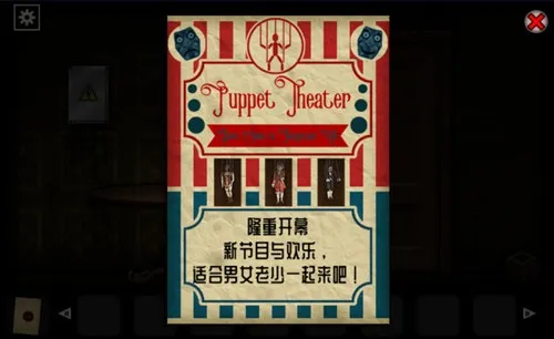 1、在木偶戏这个大门这里有一个大门,这个大门的破解方法就写在一开始就获得的票上面,如图进行调整打开大门。