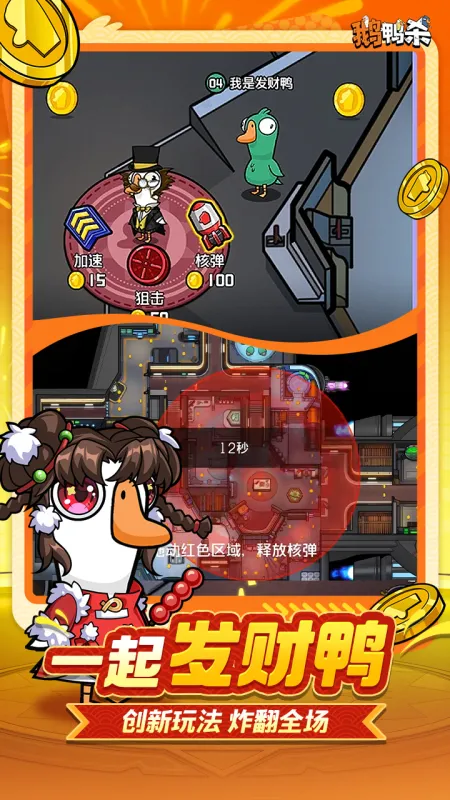 《鹅鸭杀》手机版是一款风靡全球的多人在线社交推理派对游戏!玩家随机化身忠诚的鹅或伪装的鸭,在太空船、实验室等趣味地图中完成任务、参与激烈讨论、发动阵营技能展开智勇对决。支持跨平台联机与实时语音交流,搭配丰富职业、个性装扮与动态地图,轻松搞笑又烧脑上头,是朋友开黑、派对互动的不二之选。