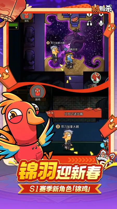 鹅阵营需协作完成任务并揪出潜伏者,鸭阵营则通过暗杀与伪装制造混乱,中立角色需达成独立目标。经典角色技能、紧急会议辩论、地图机关互动等核心玩法悉数保留。