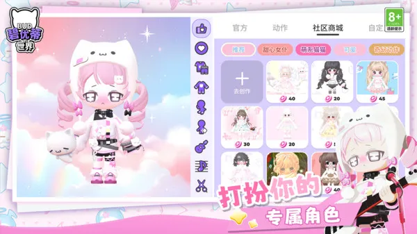 在我们繁华的社区市场中,你可以探索到由BUD玩家所创造出的各种风格的服饰,你可以随心所欲地进行搭配和尝试。