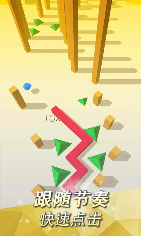 更多的障碍物随机的出现,掌握音乐的节奏进行躲避,突破手速极限。